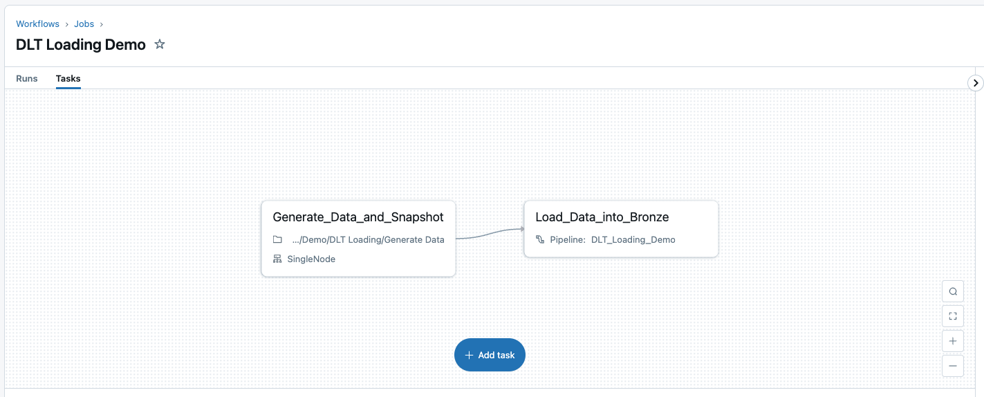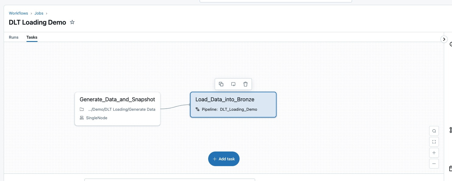 I have combined these two steps into one job so that I don’t have to manually run the notebook first and then start the DLT.