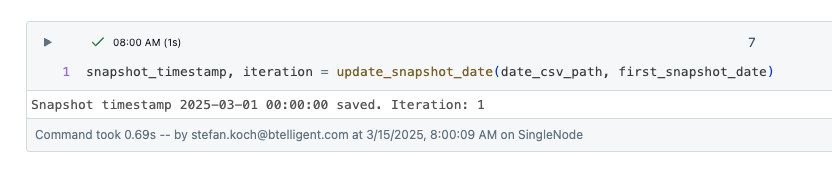 Now I create a function that creates the snapshot timestamp and returns the number of the iteration. The iteration is the number of times this notebook has already been executed. I derive the iteration from the row number in the CSV file.