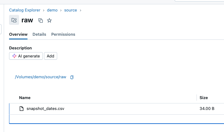 A snapshot is to be created for each execution of the notebook. I want to simulate that a full snapshot is taken every day. To do this, I have to simulate a mechanism in my notebook that each run of the notebook should take place on a subsequent day. To do this, I use a CSV file in which I write the date. During the following run, the last date is read out, incremented by one and written back again. If I want to start the test again, I can simply delete the CSV file.