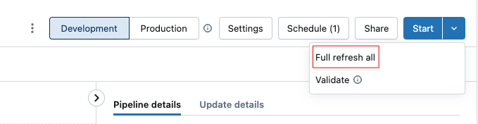 But what happens if I have to do a full refresh? To show this, I will do a full reflesh all to the Delta Live Tables and then take another look at the result.