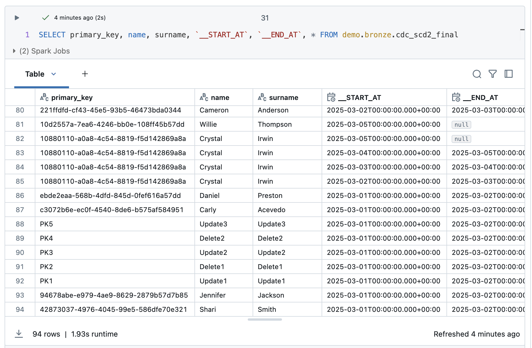 Let’s take a look at the SCD2 case when we implement apply_changes_from_snapshot with SCD2.