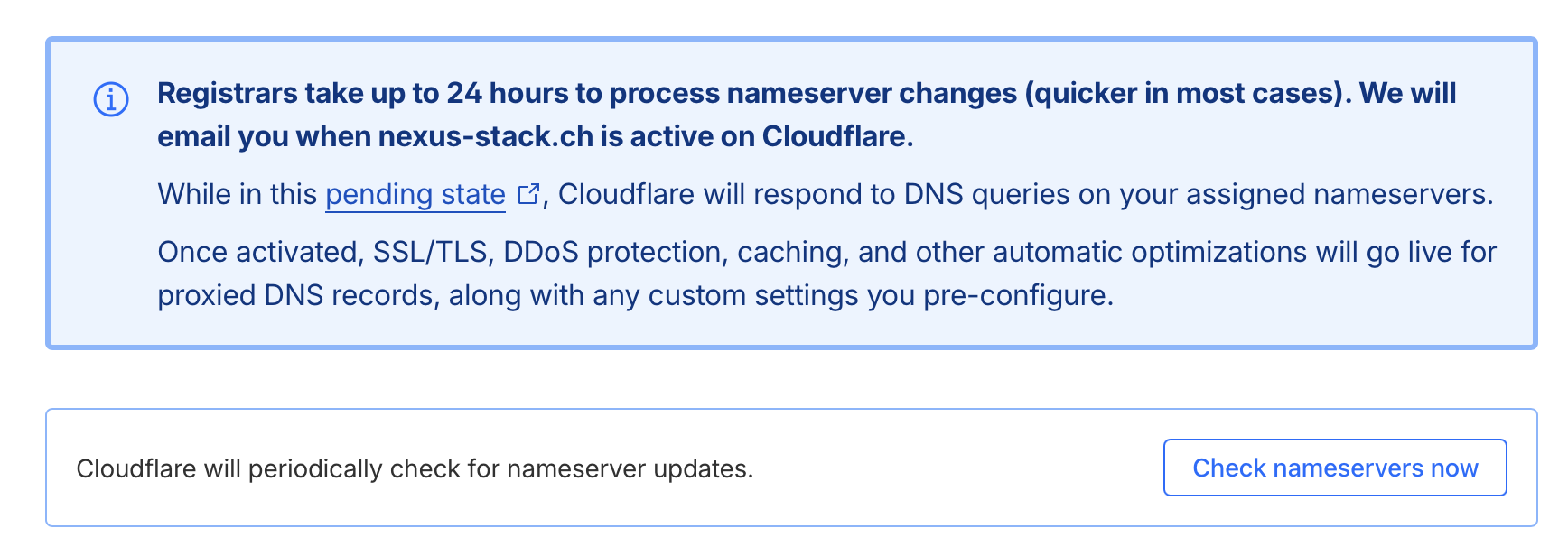 Now I point the DNS servers at the registrar to Cloudflare.