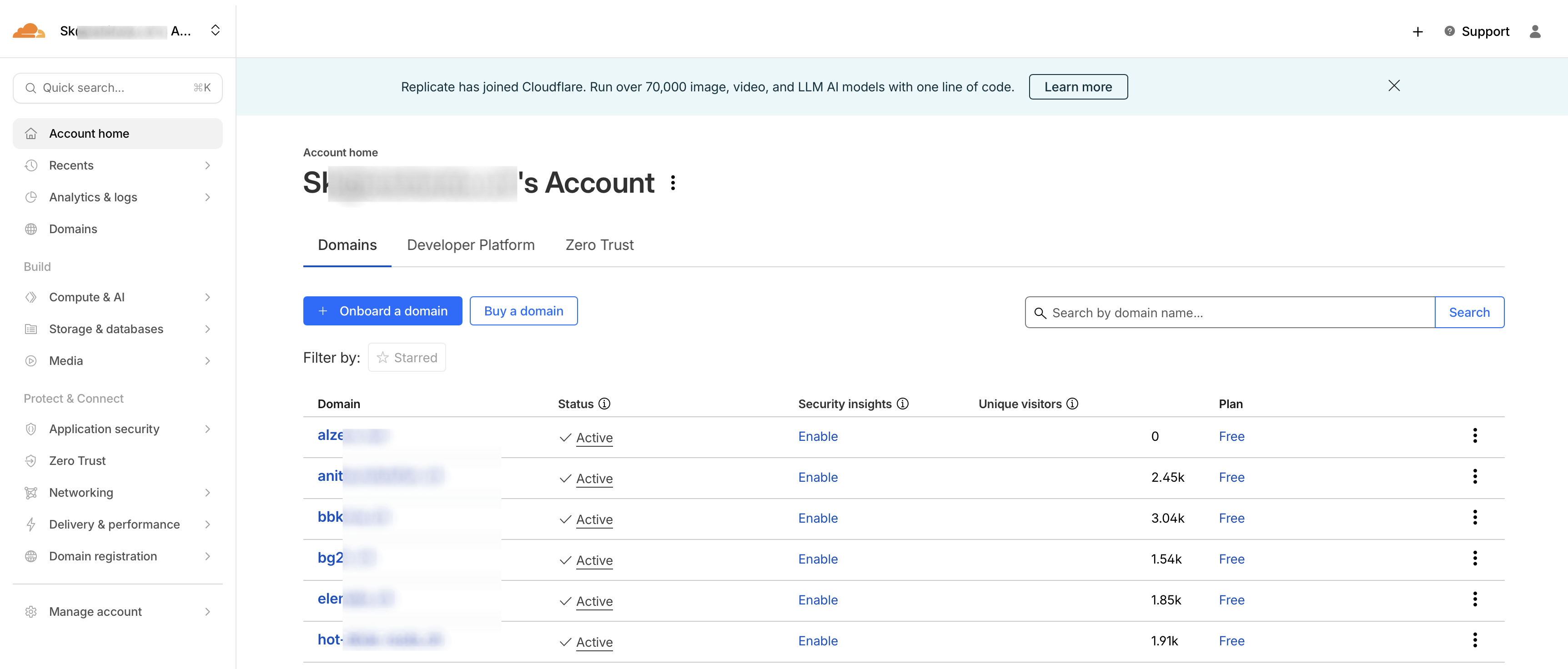 However, I want to manage this via Cloudflare. I log in to Cloudflare and go to the Home page.