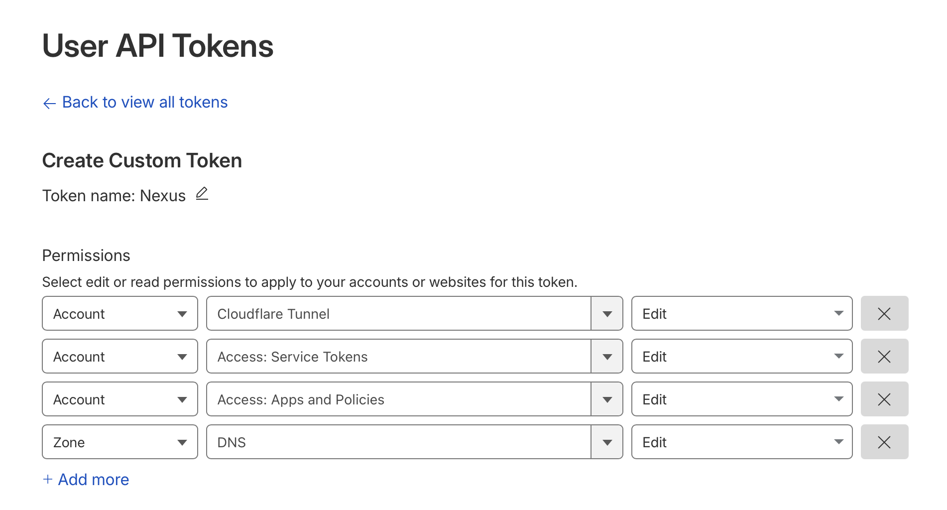 - Account:Cloudflare Tunnel:Edit – To manage tunnels