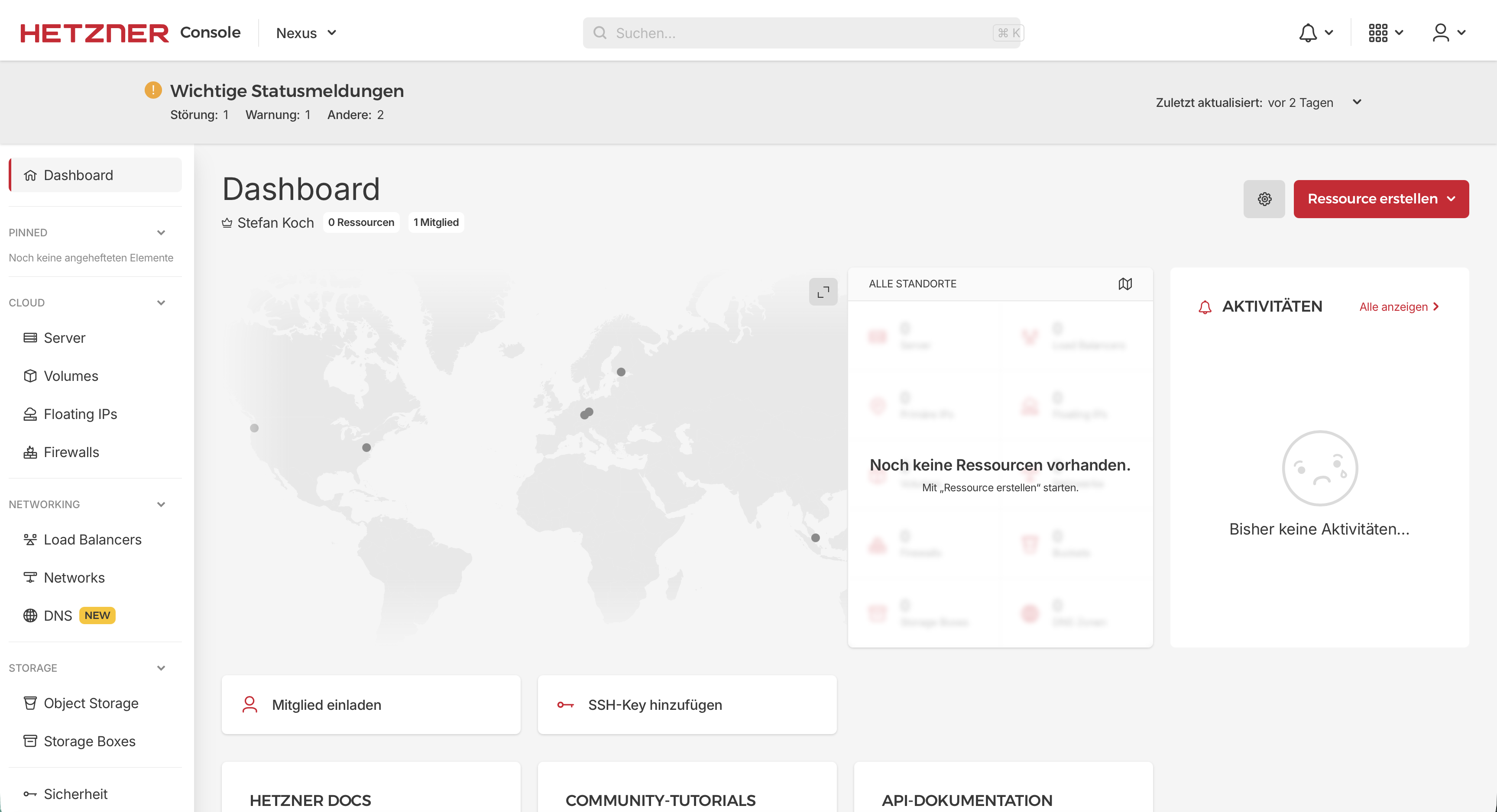 The newly created resources are now visible in Hetzner.