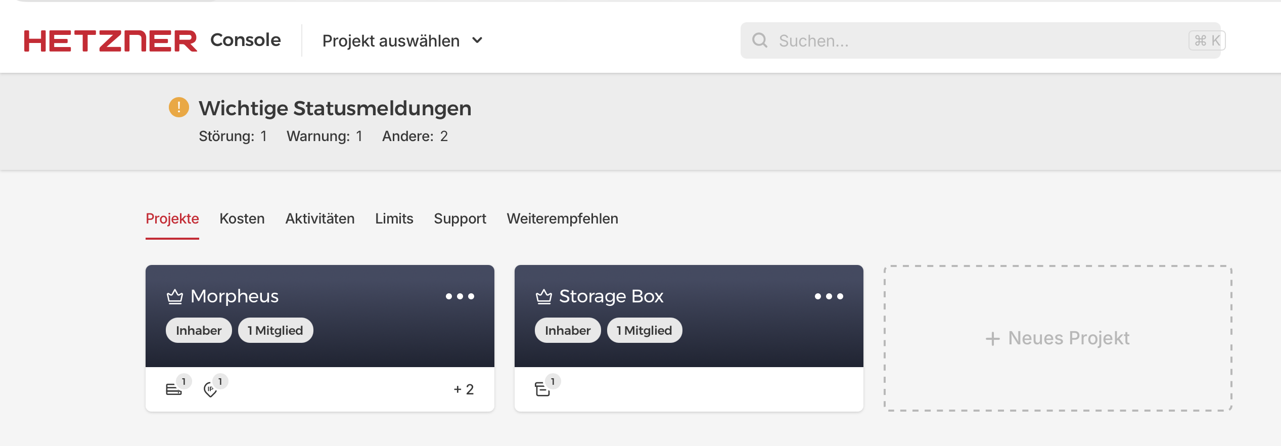 Before I can deploy, I need to make a few preparations in Hetzner itself. First, I create a new project. I’ll name it Nexus.